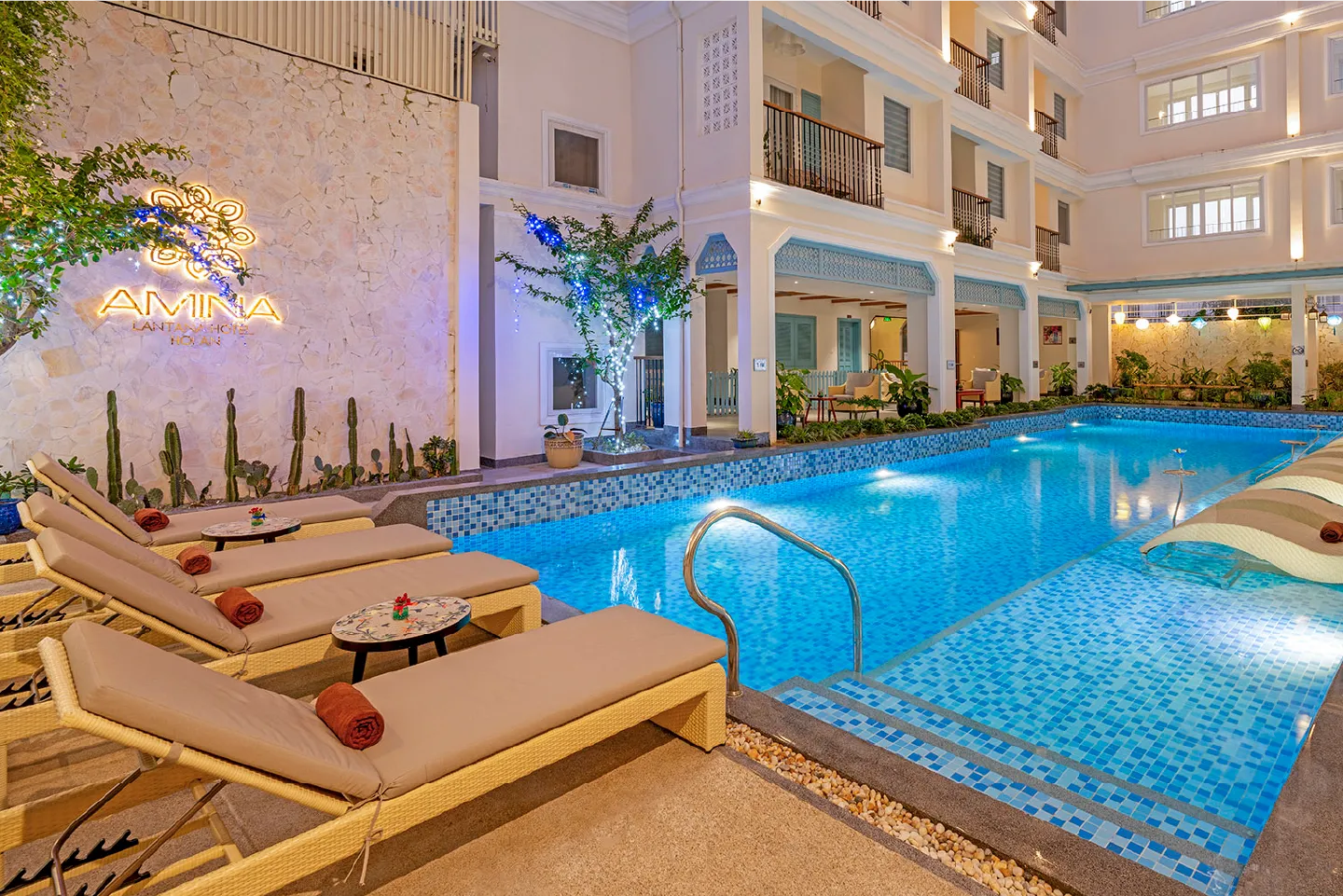 Amina Lantana showcases vibrant Mediterranean-inspired architecture, making it an ideal base for exploring Hoi An. Dive into the tranquil atmosphere of the Ancient Town and savor top-notch hotel services. Enjoy modern rooms with expansive views and a one-of-a-kind swimming pool nestled in a sunlit atrium. It's the perfect spot to relax and bask in serene surroundings. Escape the hustle and bustle at Amina Lantana, where tranquility reigns supreme. Indulge in moments of absolute calmness and rejuvenation, immersing yourself in the sanctuary of this unique retreat