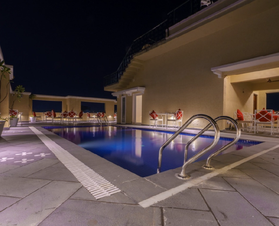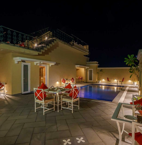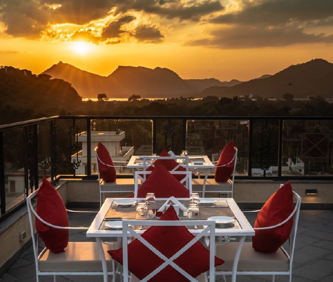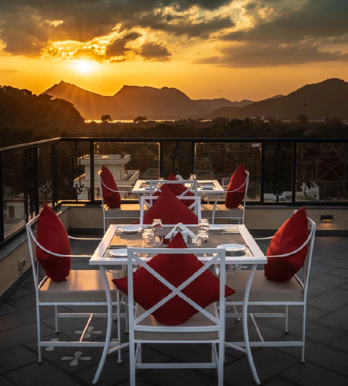 A 40 cover rooftop restaurant spread across two levels on the 5th floor of the hotel. The sunset deck offers panoramic views of the city, the Fatehsagar Lake and the Saheliyon ki Bari gardens. The sunset deck also shares space with the spectacular rooftop pool. Sunset deck is open for dinner service only and will feature a fusion BBQ themed menu.